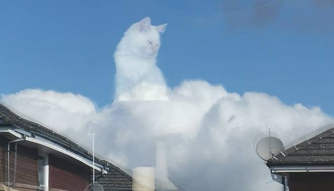 마치 고양이가 구름 위에 앉아 있는 듯한 환상적인 장면은, 찰나의 순간이 빚어낸 놀라운 우연이었던 것입니다.