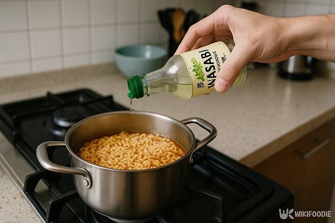 애사비 식초는 면을 끓이는 초반이 아니라, 불을 끄고 마지막 단계에서 한두 방울 떨어뜨려야 한다. 끓이는 과정에서 오래 가열하면 향이 날아가고, 산미도 약해지기 때문이다. 젓가락 끝이나 작은 숟가락으로 살짝 넣는 정도면 충분하다.