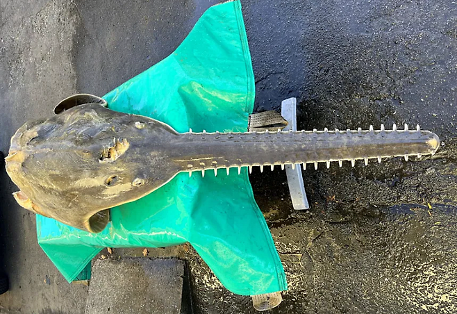 이어 "톱을 닮은 특유의 주둥이는 온전한 상태이고, 이빨은 좌우 각각 21개로 몇 개 빼고는 잘 붙어있다"며 "피부 일부와 근육 샘플을 채취해 조사한 결과 수컷 큰이빨톱가오리가 확실하다"고 덧붙였다.