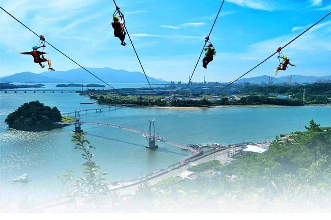 망덕산과 배알도 수변공원을 연결하는 이 시설은 총길이 898m로, 활강 4라인과 회수 1라인 등 총 5개의 라인으로 구성됐다. 출발지까지는 12인승 모노레일이 운행되어 편리함과 재미를 동시에 제공한다.