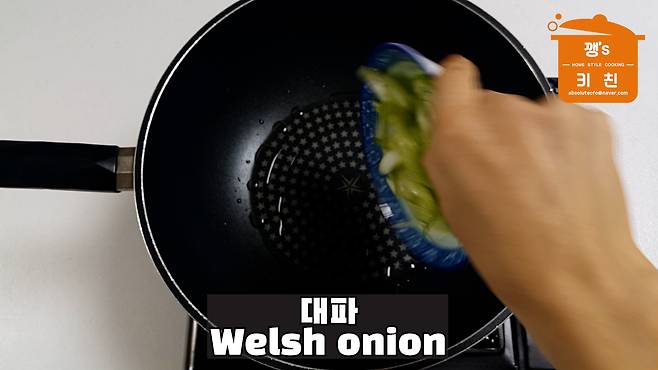 어슷 썬 대파를 넣고 볶아주세요
