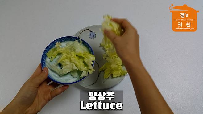 접시에 양상추를 놓아주세요