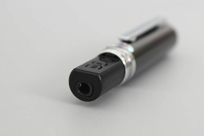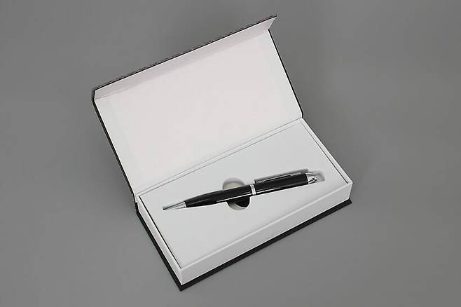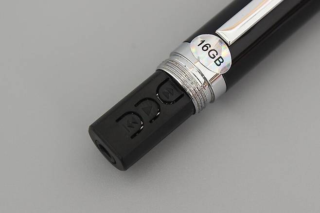 외형은 일반적인 고급 볼펜의 느낌 그대로다. 그냥 보았을 때는 보이스 레코더라는 느낌은 전혀 받을 수 없을 정도다. 제일 아래쪽을 잡고 돌리면 볼펜 심이 나오고, 필기도 가능하기 때문에 더더욱 그렇다.