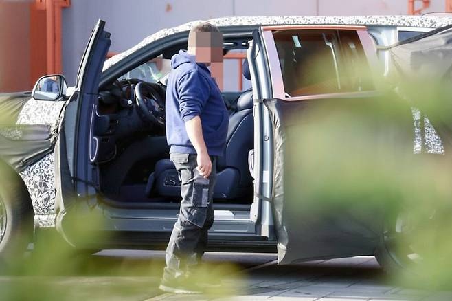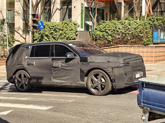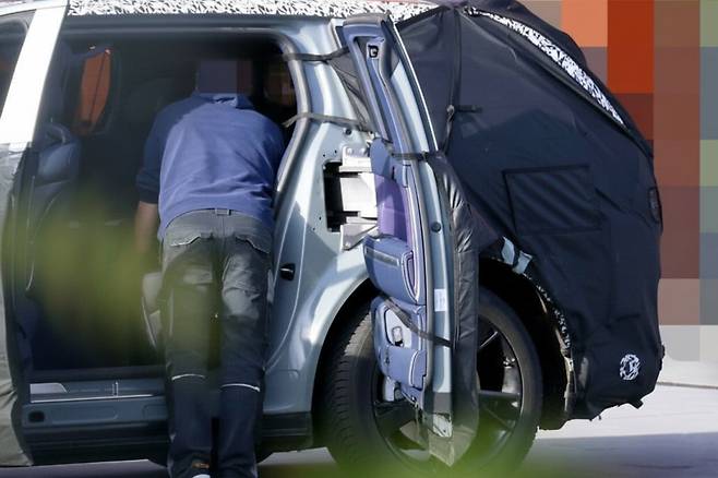 이번 테스트카에서 가장 주목되는 부분은 코치도어 구조입니다. 일반 SUV와 달리 차량 중앙에서 맞닿는 형태의 플러시 타입 도어 핸들이 확인되면서 B필러 없는 구조 적용 가능성이 현실화되고 있습니다.