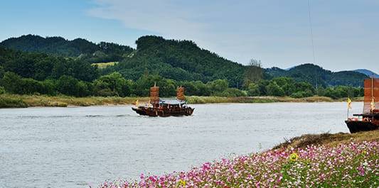 부여 구드래 나루터에서는 황포돛배를 타고 백마강을 일주해 보는 특별한 경험을 하실 수 있습니다. 특히 유유자적 떠올라 움직이는 돛배에서는 시간이 멈춘듯한 고요함과 주변 아름다운 경치을 감상할 수 있습니다.