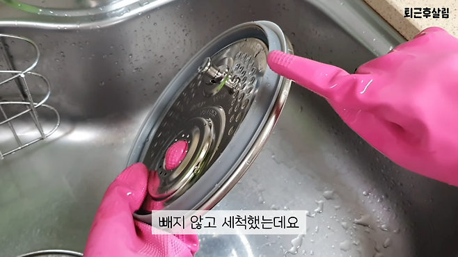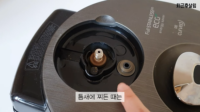 자동세척 후 뚜껑을 열면 스팀효과로 때가 불려져 세척하기 수월해지는데요. 홀더는 돌려 분리해주고 분리형 커버도 당겨 빼 주세요. 저는 이 고무패킹은 빼지 않고 세척했는데요. AS센터에 문의하니 이 패킹은 틈새에 안 맞으면 증기가 샐 수 있고 뺏다가 못껴서 센터를 방문하는 경우도 많아 안 빼고 세척하는 걸 추천해 주시더라구요. 대신 때가 끼지 않게 자주 세척해 관리해주시고 1년마다 패킹을 교체 해주시면 됩니다.