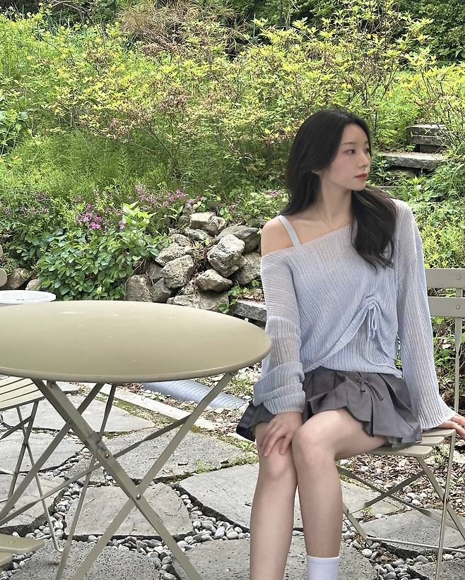 니트지만 답답하지 않고 흐르는 듯한 짜임이라 여리여리함이 극대화돼요.
