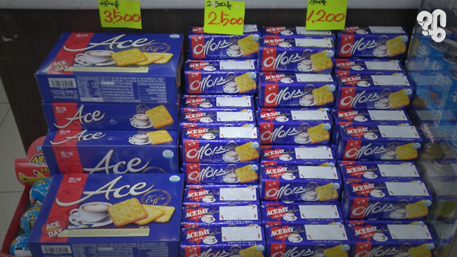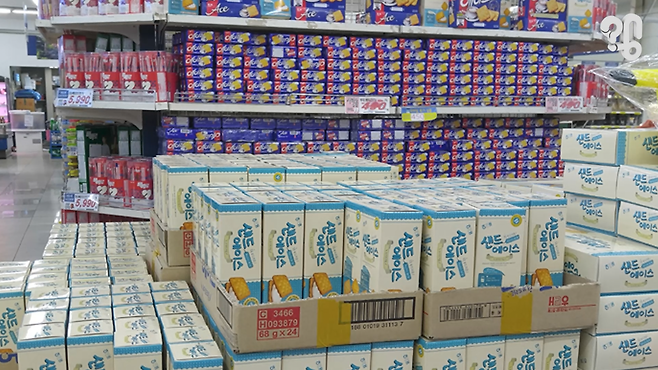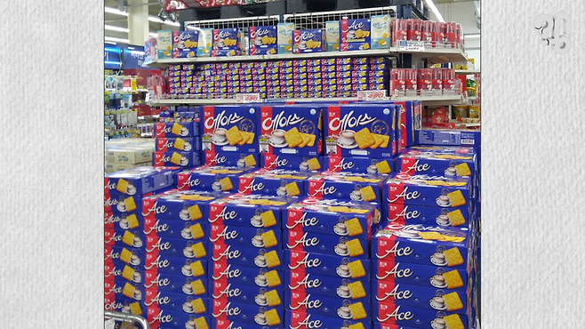 이 사진을 보라. 전남의 한 마트 한켠에 산더미처럼 쌓인 에이스 과자들. 빼빼로데이가 다가오면 매대마다 빼빼로가 자리 잡은 모습은 익숙한데, 에이스가 이렇게 대량으로 놓여 있는 풍경은 낯설다. 대체 왜 에이스를 이렇게까지 쌓아둔 걸까?