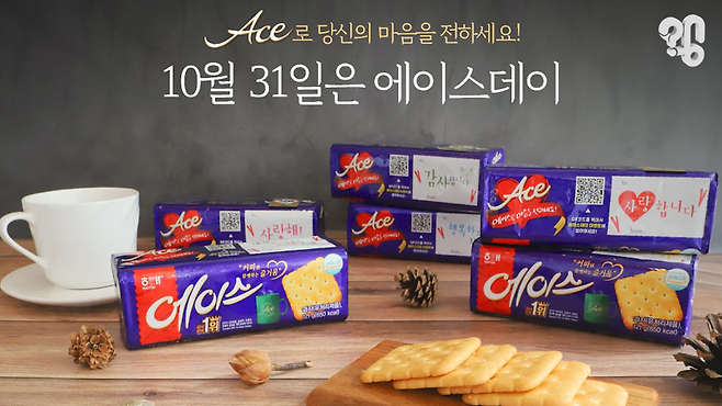 실제 에이스 비스킷 포장지에는 지금도 이렇게 적혀 있다. “10월 31일은 ACE DAY” “에이스로 마음을 전하세요.” 근데 이날은 해태가 만든 날은 아니라고 한다.