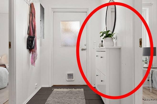 거울이 현관문을 정면으로 마주보고 있을 경우, 들어오는 좋은 기운을 반사시켜 나가게 만든다고 봅니다.