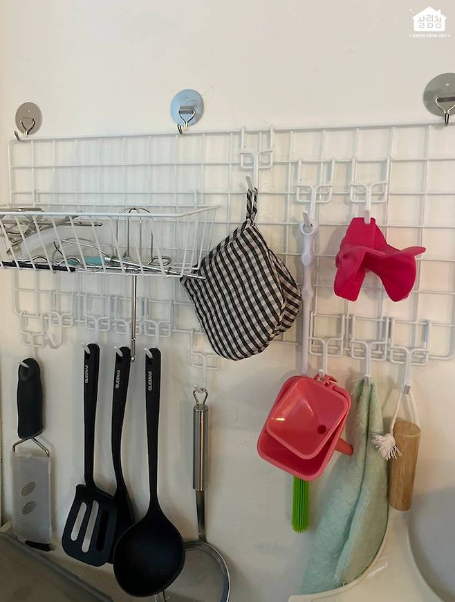 오늘의집 살림 고수님들은 비슷한 제품을 이렇게 사용하고 계시더라고요! 다이소 네트망 하나로도 채칼, 뒤집개, 국자, 컵까지 정말 많은 물건을 수납할 수 있네요👀