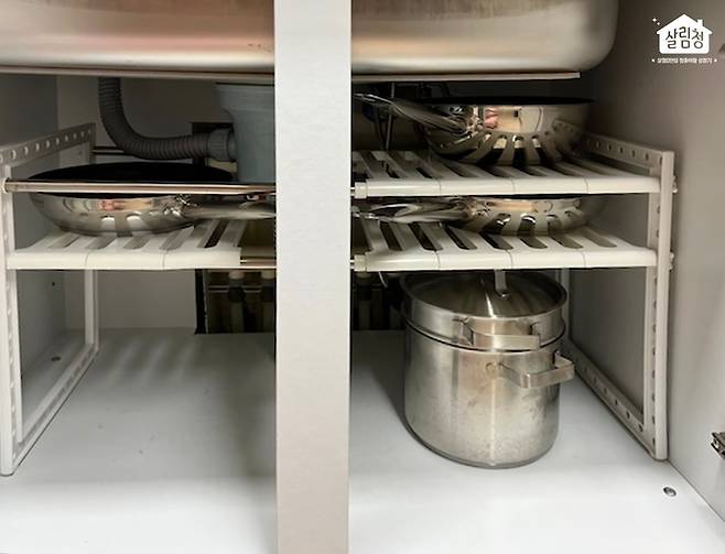 비슷한 손잡이 바구니를 사용하신 살림 고수님의 활용법이에요. 보이시나요..? 이 깔끔한 주방 정리! 🧂