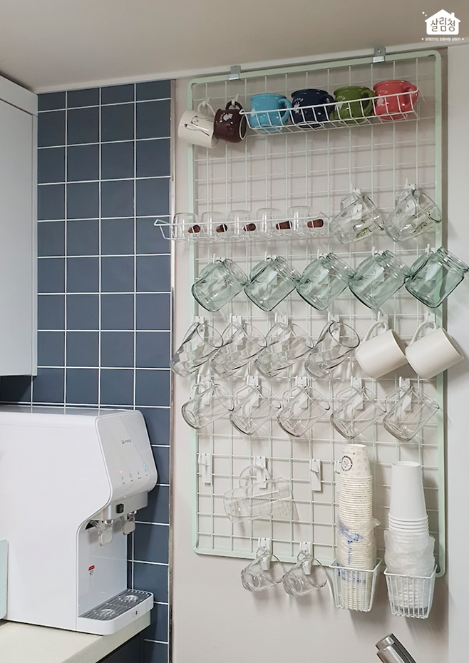 오늘의집 살림 고수님들은 비슷한 제품을 이렇게 사용하고 계시더라고요! 다이소 네트망 하나로도 채칼, 뒤집개, 국자, 컵까지 정말 많은 물건을 수납할 수 있네요👀