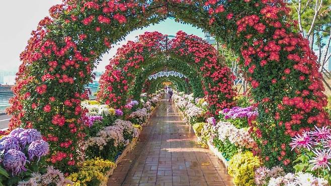 바닷가의 국화밭에서 시작해 불꽃이 터지는 밤으로 끝나는 9일간의 축제, 마산가고파국화축제는 가을의 정취를 가장 화려하게 만날 수 있는 축제다.