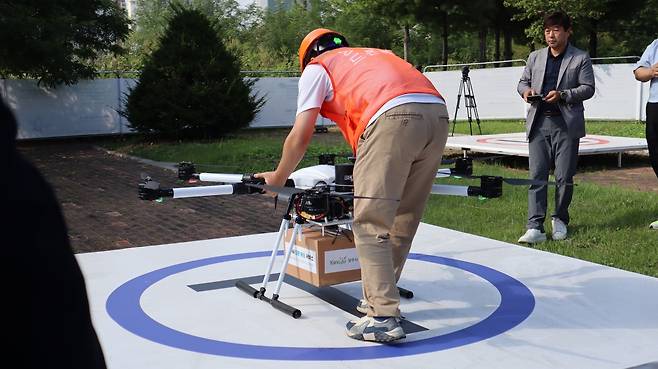 | ▲ 경기교통공사가 27일부터 양주시에서 ‘2024 드론 실증도시 구축사업’의 일환으로 드론 배송 서비스를 시작했다. |