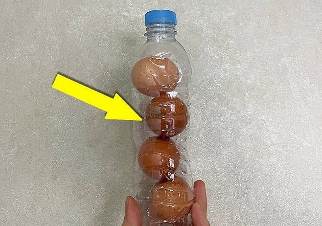 잘라낸 페트병 안에 계란을 차곡차곡 넣어 보관하면 간단한 계란 보관통이 완성됩니다. 병 입구의 뚜껑 부분은 덮개처럼 활용할 수 있어 먼지나 냄새 유입을 줄여줍니다. 또한 투명한 용기라 계란 상태를 쉽게 확인할 수 있는 장점도 있습니다. 재활용품을 활용하는 방법이라 경제적이면서도 실용적입니다.