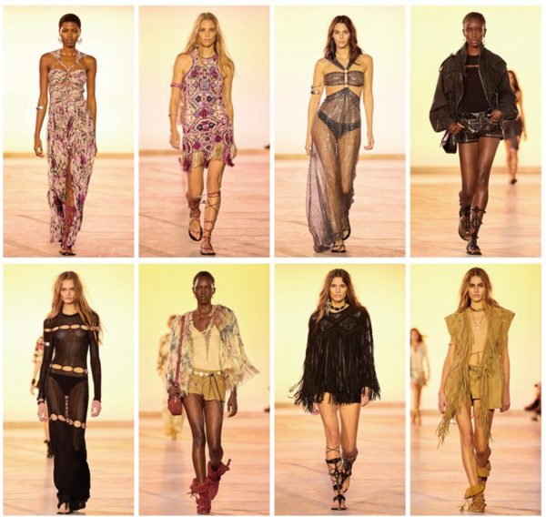 보헤미안 시크룩에 관심이 많은 분들은 '이자벨마랑' 브랜드에 주목해 보자. 이자벨마랑은 매 시즌 매혹적인 보헤미안 프렌치 시크 무드를 선보이는 패션 브랜드다. 특히 지난 9월에 발표한 2025 S/S 컬렉션은 지난 가을 시즌보다 더욱 강렬한 보헤미안 룩을 보여줬다. 버건디·오렌지 등 고대 역사의 산물을 기반으로 하는 컬러감을 연출하면서 화려한 대비감과 프린트 디테일들을 강조했다는 평가를 받는다.