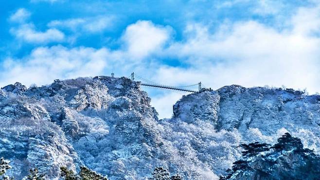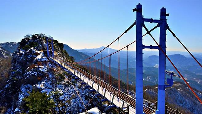 이 하늘다리는 서로 단절되어 있던 두 바위 꼭대기를 연결해 조성한 현수형 구조물로, 걸을 때마다 발밑으로 펼쳐지는 계곡과 바위가 아찔함을 선사한다.