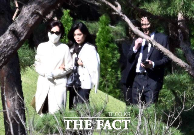 [더팩트ㅣ수원=임영무 기자] 이재용 삼성전자 회장(오른쪽)과 홍라희 전 삼성미술관 리움 관장, 이부진 호텔 신라 사장이 25일 오전 경기 수원 이목동 선영에서 열린 고 이건희 회장 4주기 추도식에 참석하고 있다.