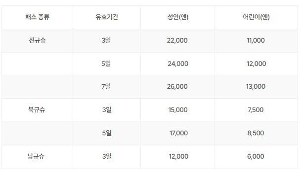 특히 규슈의 주요 도시 간 이동이 많거나, 신칸센이나 특급열차를 타고 빠르게 여러 지역을 둘러보고 싶다면 이 패스가 좋은 선택이 될 수 있죠.