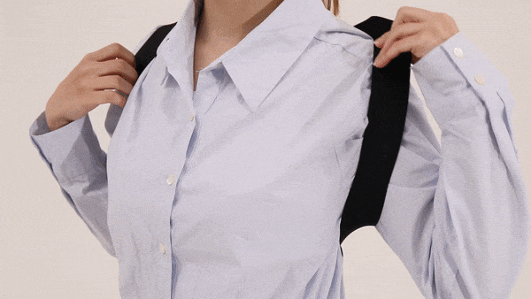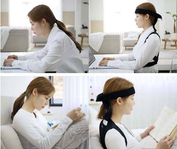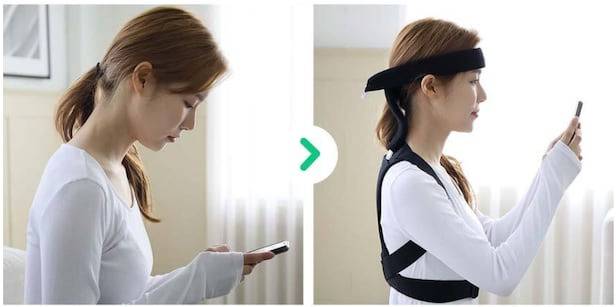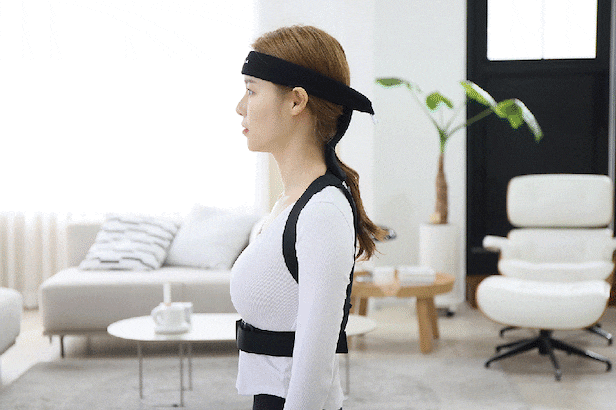 어깨를 감싸주는 밴드가 어깨를 활짝 열고, 조절형 경추 지지대가 등을 바로 세우며, 목 고정형 밴드가 머리를 당겨 목의 바른 자세를 유도하죠.
