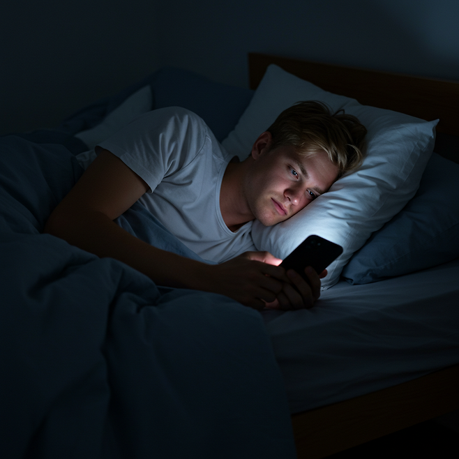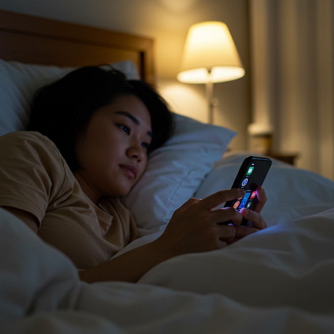 저녁 시간의 핸드폰 사용은 수면의 리듬을 흐트러뜨리고, 그 여파는 다음 날 하루 컨디션까지 이어집니다.
