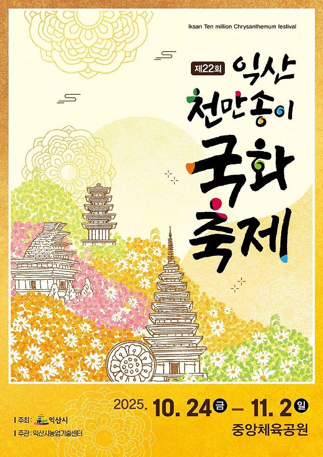 전북 익산의 대표 가을 축제, 익산천만송이국화축제가 오는 2025년 10월 24일부터 11월 2일까지 열린다. 올해는 "익산백제, 국화로 꽃 피우다"라는 주제로 진행되며, 도심 전체가 국화 향기로 물들 예정이다.