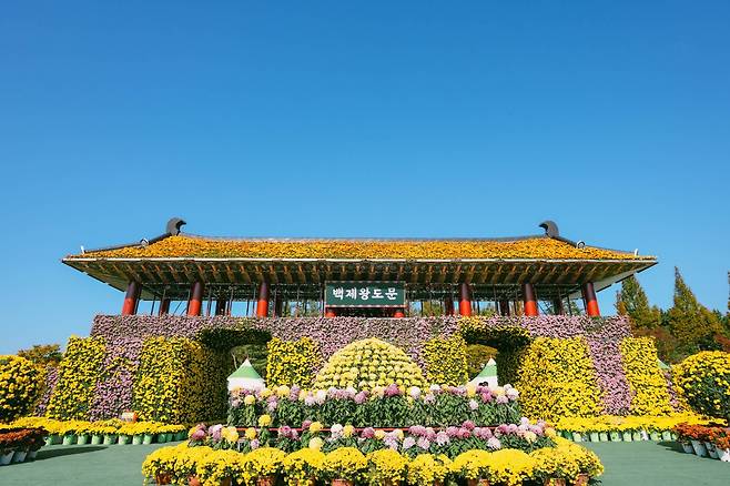 축제장에 들어서면 대형 선물상자, 케이크, 봉황, 쌍용 등 국화를 식재해 만든 대형 조형물들이 관람객을 맞이하고자 준비되고 있다. 백제왕도문을 형상화한 작품까지 더해져 역사와 예술이 어우러진 특별한 볼거리를 선보일 예정이다.