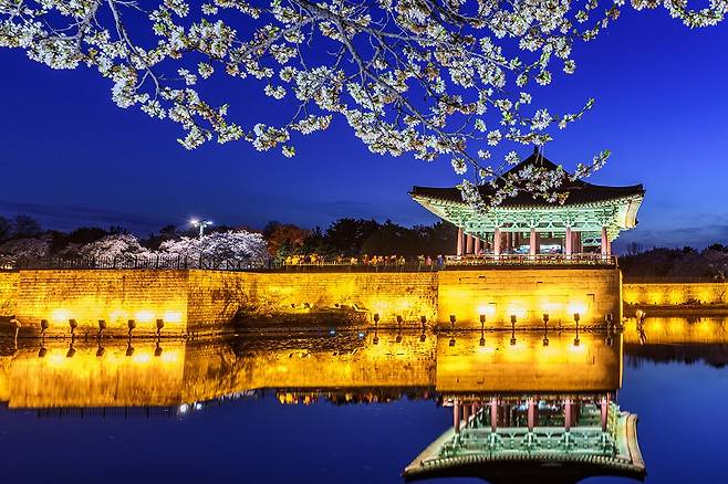 ▶동궁과월지 / 대릉원에서 차로 몇 분 거리, 신라 왕궁의 아름다운 연못을 품은 고요한 정원입니다. 달빛까지도 비추는 잔잔한 호수 위에서 고풍스러운 사색을 즐겨보세요.