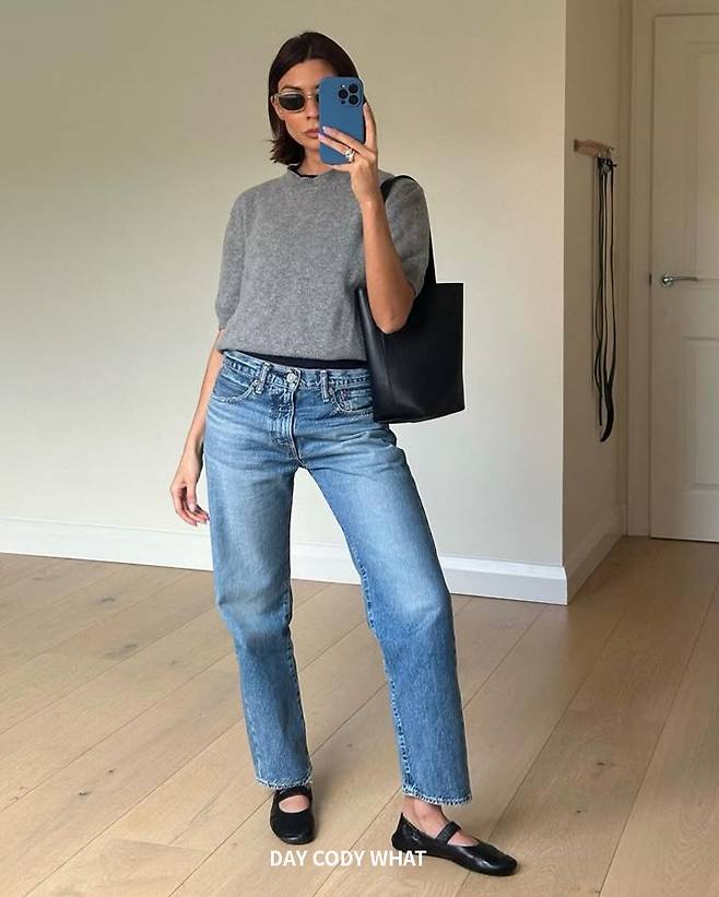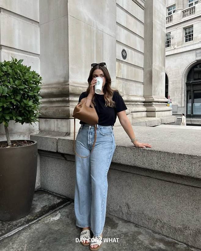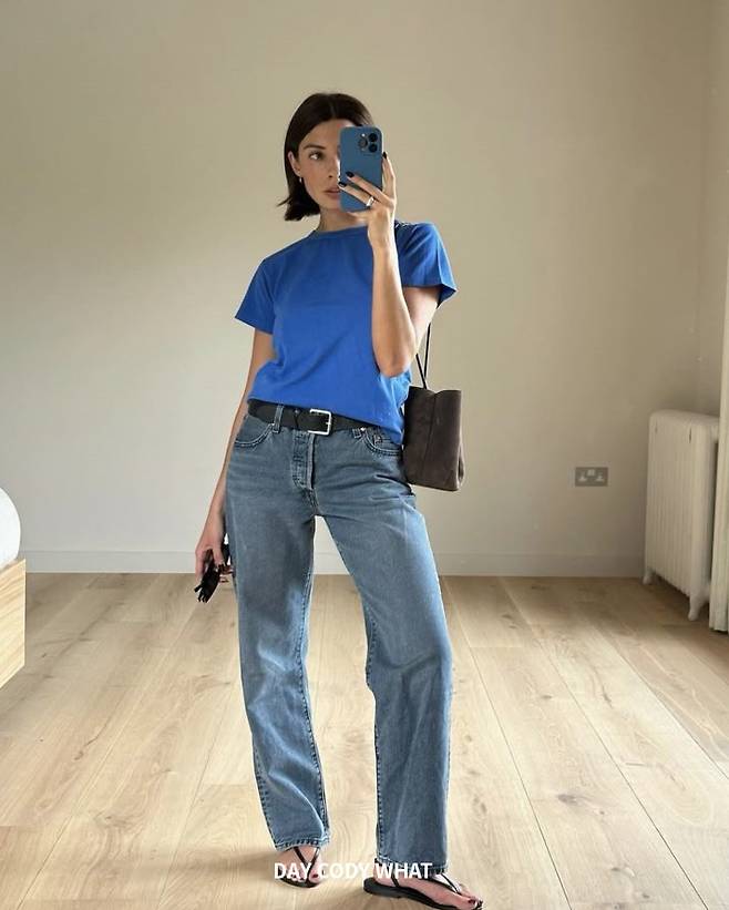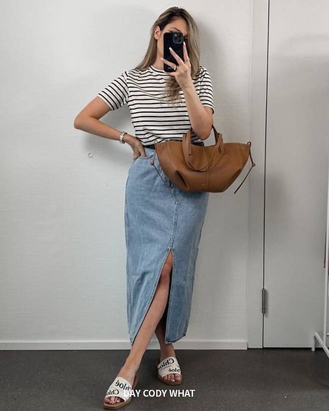 2.검정 반팔+연청 데님 팬츠 / 데님 롱 스커트