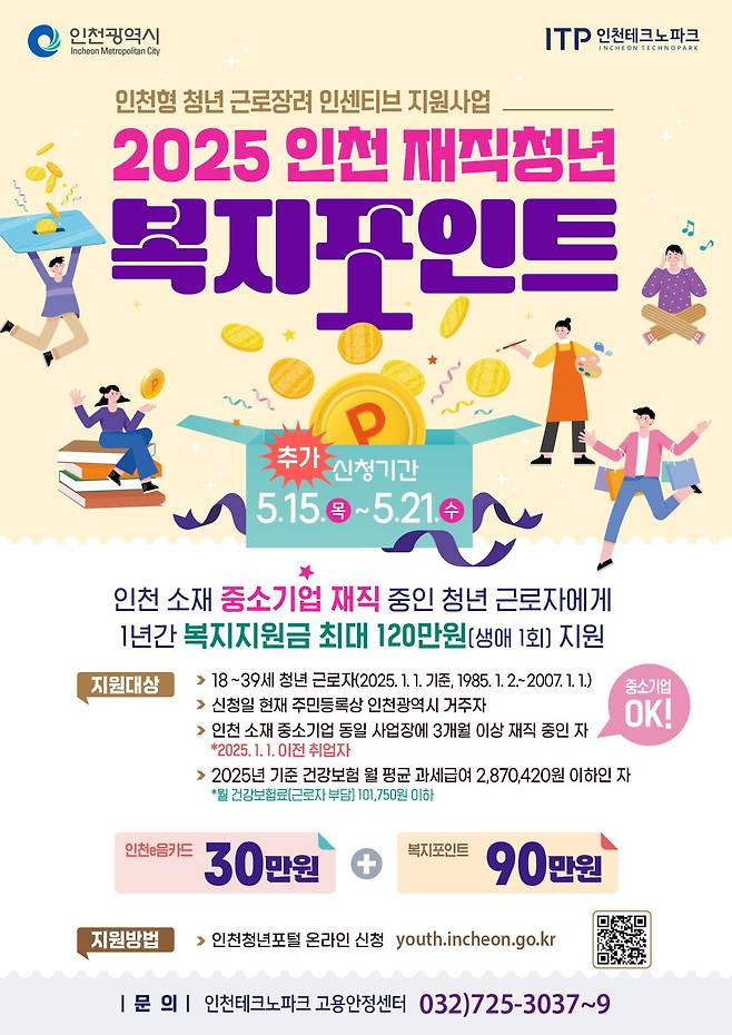 인천 중소기업 근로자 복지포인트 120만원 지원 추가 모집하네요.