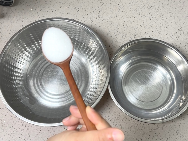 총 15분 동안 설탕을 불려줄 예정이고 물의 양과 미역의 양은 동일합니다.