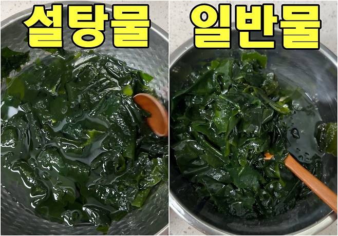 이제부터는 미역 불릴 때 설탕을 넣어보시면 좋을 것 같습니다.