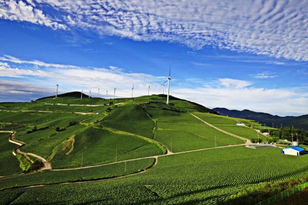 해발 1,303m의 매봉산 자락에 위치한 태백 바람의 언덕입니다. 높은 고원에 위치한만큼 한여름에도 시원한 산 바람이 불어와 더위를 피할 수 있는 여름 태백 가볼만한 곳으로 추천하는데요. 7~8월 사이에는 풍력발전기 아래 고랭지밭이 푸릇한 잎으로 가득 채워져 더욱 청량감있는 풍경을 마주할 수 있습니다.