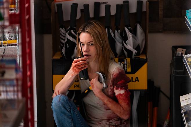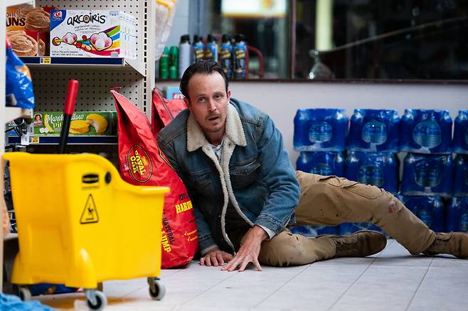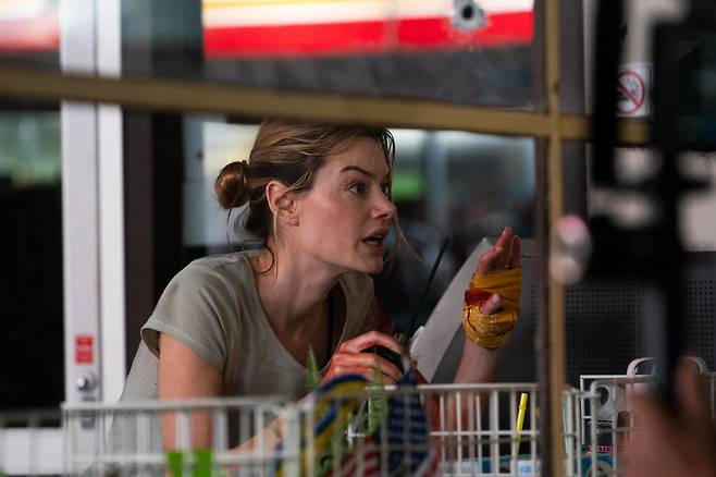 '노 엑시트'는 한밤중 무차별 총격이 쏟아지는 편의점에 갇힌 주인공의 사투를 그린 영화다.
