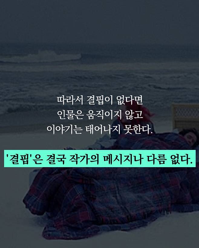 반대로 결핍이 없다면 인물은 움직이지 않고 이야기는 태어나지 못하겠죠.
