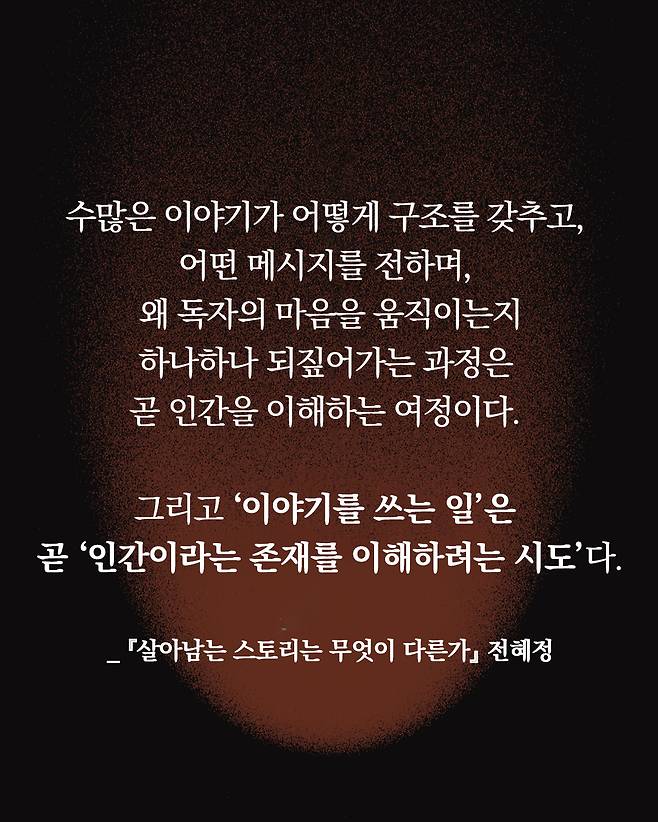 이 책 『살아남는 스토리는 무엇이 다른가』는 창작법을 소개하는 책이기도 하지만, 무엇보다도 이야기를 읽거나 쓰고 공유하며 살아가는 우리 모두를 위한 책입니다.