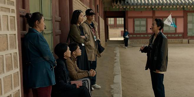 관광가이드로 일하기 위해 주인공은 여행사에서 면접을 준비하는 중이다. 시켜만 주시면 잘할 수 있다며 떨리는 목소리로 질문에 답하는 주인공의 (면접담당자에겐 보이지 않는) 손끝은 그의 조마조마한 심정을 증폭시킨 것처럼 마구 떨리고 있다. 영화 속 시계에서 해당 시기는 2010년대 중반, 한참 '유커'라 불리는 중국의 중산층 (구매력을 확보한) 관광객들이 한국 관광에 나설 때이다. 주인공이 중국어를 구사할 수 있어 도전했을 취업 현장이다.
