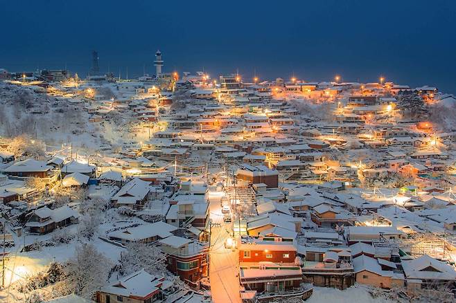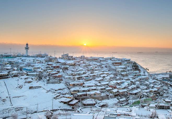 겨울 바다가 아름답다는 동해안의 작은 항구, 바로 묵호항인데요. 눈 내리는 날, 겨울 바다와 눈 덮인 산이 만들어내는 풍경이 상당히 비경입니다. 또한, 묵호항에서 바라본 동네의 풍경은 상당히 레트로하여, 이를 배경으로 멋진 사진을 남기기에도 제격입니다.