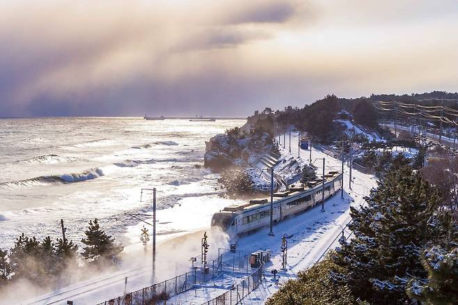 묵호항의 하이라이트는 KTX 정차역인 묵호역을 횡단하는 설국 열차가 아닐까 싶은데요. 겨울 바다를 옆에 끼고 달리는 눈 덮인 설국 열차는 한편의 그림처럼 다가오는 듯합니다. 겨울 풍경도 감상하고, 멋진 설국열차도 볼 수 있는 겨울 여행지로 동해는 어떠세요?