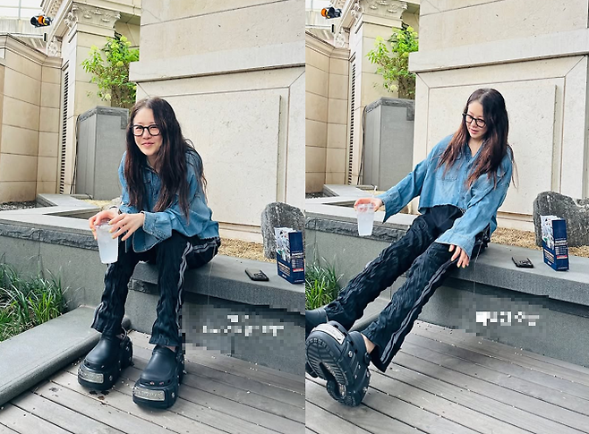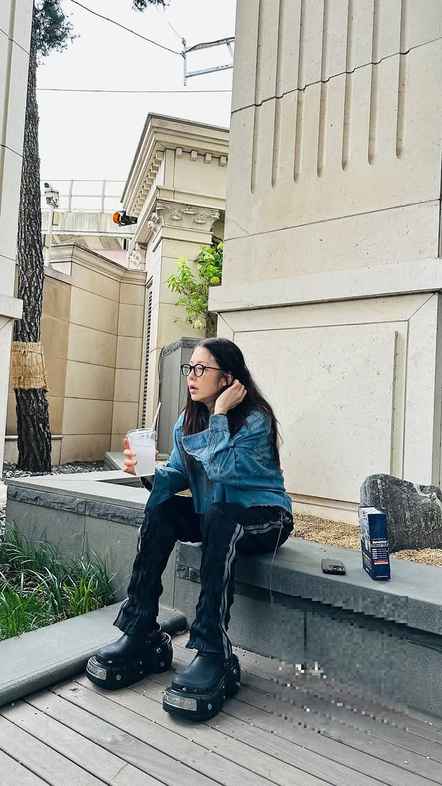 사진 속 고현정은 편안한 데님 셔츠와 와이드한 팬츠, 블랙 샌들로 꾸안꾸 무드를 연출했다.