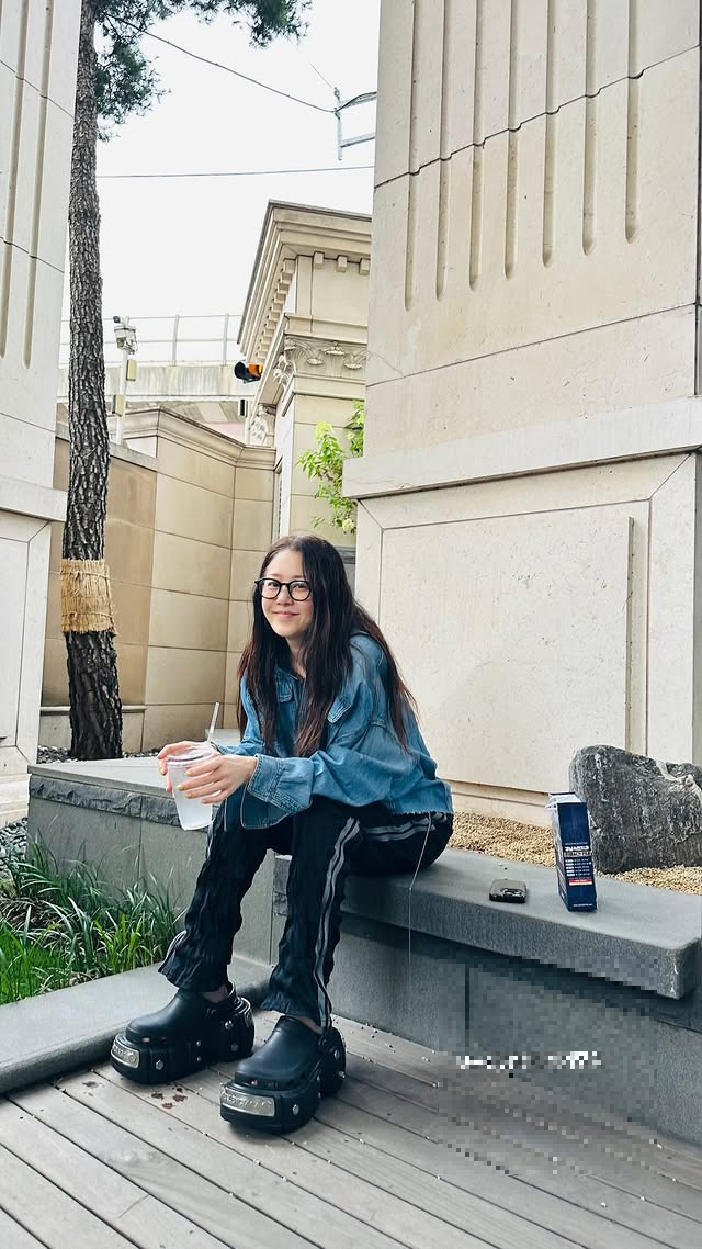 특별한 포즈 없이 앉아 있는 모습만으로도 각선미와 슬림한 팔다리가 눈길을 사로잡는다.