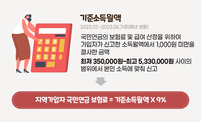 지역가입자는 기준소득월액의 9%를 보험료로 납부하게 됩니다.