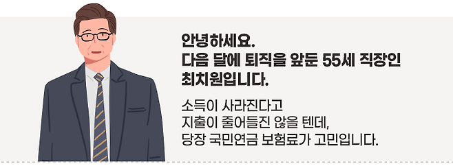 이제 퇴직해서 다달이 받던 월급이 사라지고 나면, 어떻게 살아야 할지 고민이 많은데요. 당장 국민연금 보험료가 문제입니다. 퇴직하면 지역가입자로 전환해서 보험료를 납부해야 한다는데…