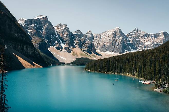 세계에서 가장 아름답다고 정평난 모레인 호수와 광활한 숲이 어우러진 로키산맥은 폭염에 지친 마음을 시원하게 정화시켜주는 것 같습니다.
