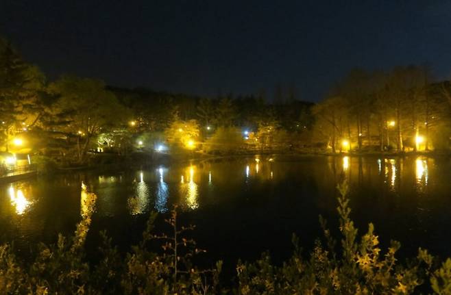 야간 조명은 보통 밤 10시 전후로 소등되며, 포스텍 캠퍼스와 지곡동 주택단지 인근에 위치해 있어 밤에도 비교적 안전하게 산책할 수 있는 코스로 알려져 있습니다.