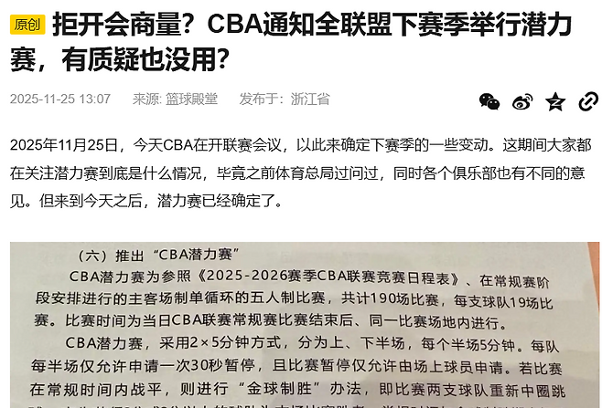 중국 언론 ‘넷이즈’에 따르면, 이날 회의서 CBA 구단들은 놀라운 통보를 받았다.