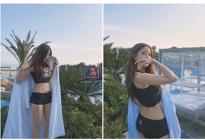 효민의 탄탄한 몸매가 부각되는 쉐입으로