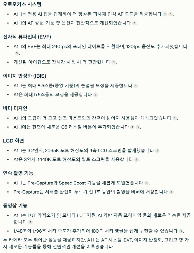 perplexity.ai에게 물어본 a1과 a1 ii의 차이