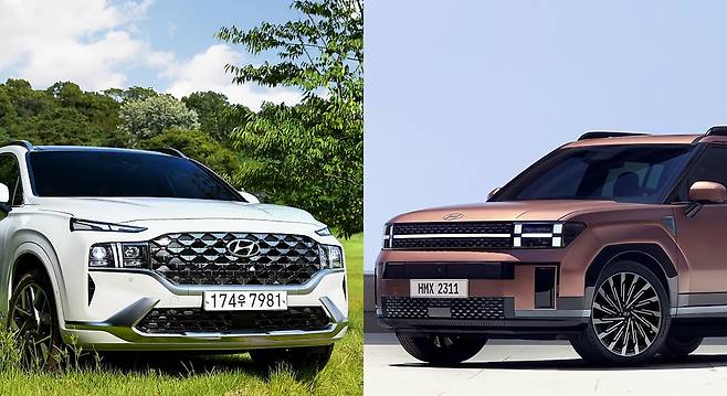 최상위 캘리그래피 트림의 가격 차이는 291만 원. 역시 가격이 올라간 만큼 사양 차이가 확실하다. 먼저 휠은 이전엔 20인치, 신형은 21인치로 키웠다. 1~2열 이중접합 차음유리의 경우, 구형은 2023년형에 신설한 프레스티지 초이스 트림부터 들어간 반면, 신형은 중간 프레스티지 트림부터 탑재했다.